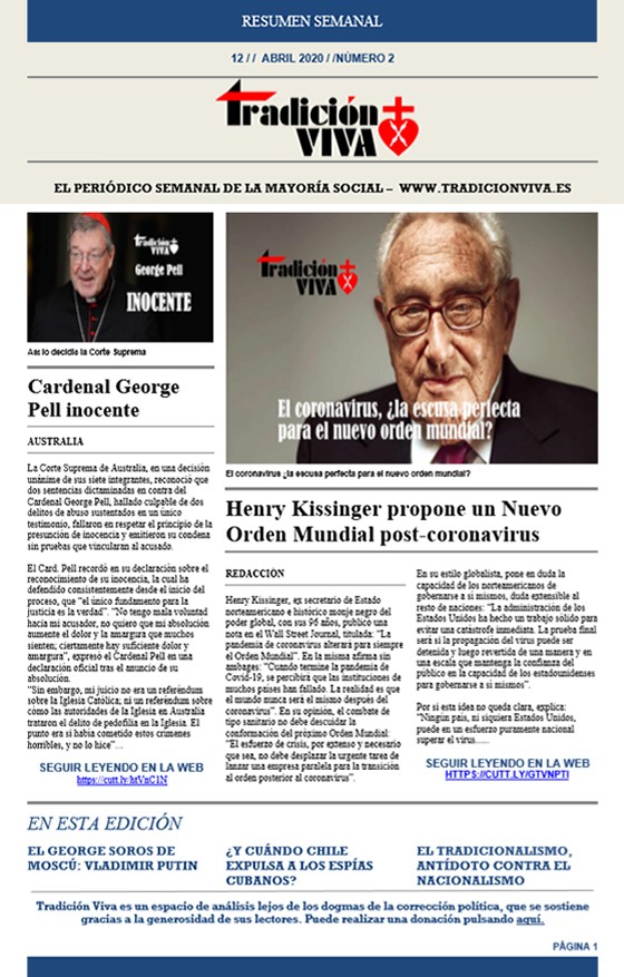 EMBÁRCATE EN LA LUCHA CONTRARREVOLUCIONARIA: Si quieres defender la cristiandad y la hispanidad, envíanos tus artículos comentando la actualidad de tu país hispano, o colaboraciones sobre la fe católica y la cultura, así como reseñas de libros, artículos de opinión… Ya superamos las 12.000.000 de páginas vistas anualmente en todo el mundo, únete a nuestro equipo de voluntarios y difunde la verdad compartiendo en redes sociales, o remitiendo tus colaboraciones a redaccion@tradicionviva.es . Puedes seguirnos en Telegram: t.me/tradicionviva / Facebook: @editorial.tradicionalista / Twitter: @Tradicion_Viva / Youtube: youtube.com/c/tradicionvivaTv / Suscríbete a nuestro boletín digital gratuito, pulsa aquí.